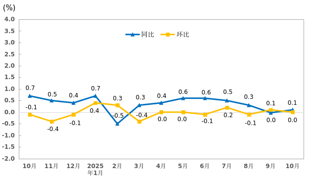 2024年10月—2025年10月武汉市居民消费价格涨跌幅。