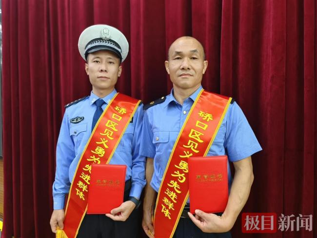 其中,在武汉市汉江边联手救人的退役军人、武汉市公安局硚口区分局交通大队一中队辅警班长韩靖和武汉铁路局武汉客运段列车员、长江救援志愿队队员陈才斌光荣上榜,被授予“湖北省见义勇为先进群体”称号。