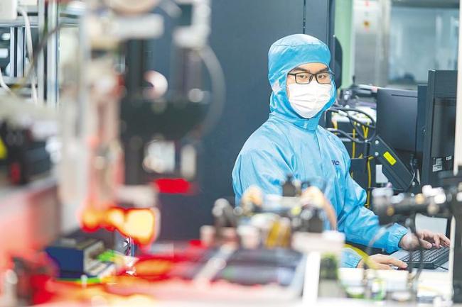 国家信息光电子创新中心无尘实验室内,工程师对芯片进行性能初测及筛选。(湖北日报全媒记者魏铼摄)