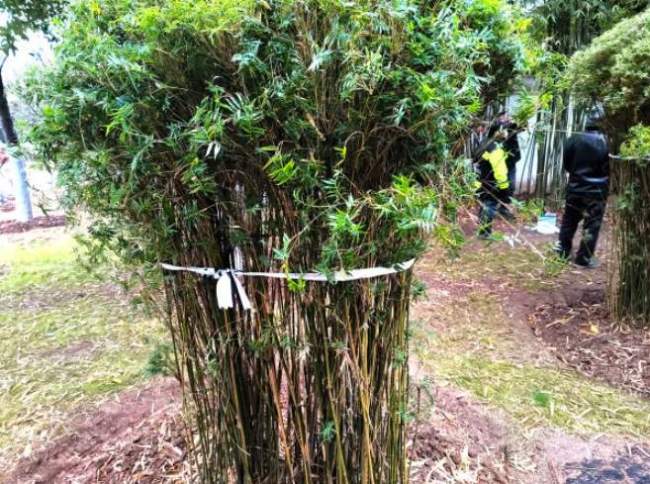 沙湖公园给竹子系上“发箍”。孟新宇 摄