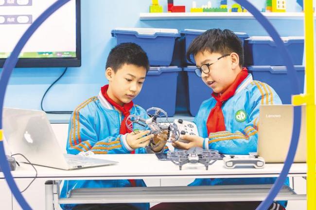 省人大代表积极建言,推进教育均衡发展。图为襄阳市大庆路小学学生在学习无人机编程。(视界网李旭晖摄)