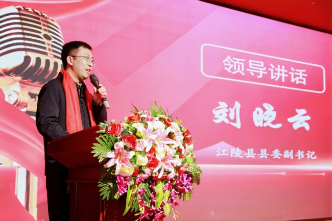 祝愿各位事业长青、宏图永续。愿你们在时代浪潮中勇立潮头,在广阔天地里再创辉煌,让“江陵企业家”的金字招牌更加闪亮。希望各位常回家看看、多为家乡代言。期盼你们常把先进理念带回来,把优质项目引回来,把深情厚谊带回来,家乡的建设需要你们的智慧和力量。期盼我们同心同德、共创未来。期盼我们携手并进,把个人发展、企业壮大与家乡振兴更加紧密地融合,共同谱写新时代荆州高质量发展的壮丽篇章!现在江陵正聚焦新能源新材料、农产品加工、绿色智能新能源船舶和海工装备现代物流四大主导产业,重点攻坚十条产业链,商机无限、前景可期!家乡永远是大家的坚强后盾,更盼各位乡贤:做江陵“代言人”,多宣传推介家乡;做返乡“领头雁”,把好项目、好技术、好人才带回江陵,在主导产业领域大展身手;做政企“连心桥”,搭起沟通桥梁,助力家乡越来越好。县委县政府定以最大诚意、最优政策、最好服务,欢迎各位返乡兴业,让大家投资有回报、创业有舞台!