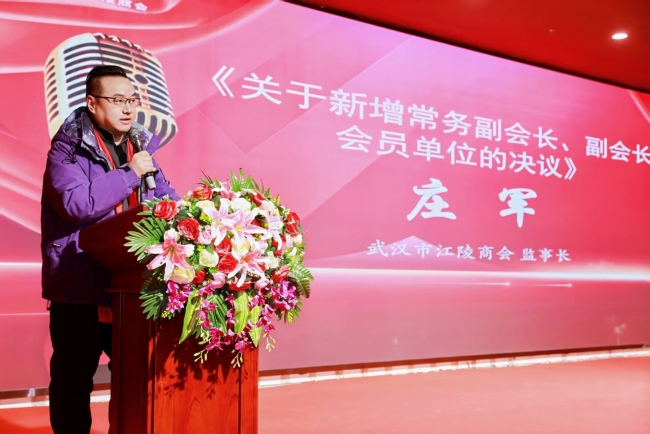 沧海横流,随着工作不断深入推进,武汉市江陵商会影响力也不断扩大,又有一批新的优秀企业家加入到商会大家庭。武汉市江陵商会监事长、武汉神州旅创旅游规划有限公司董事长、华中师范大学教授庄军博士代表商会,宣读了神圣的《关于新增副会长、会员单位的决议》,并对大家的加入表示了热烈欢迎,同时他希望新增的各位成员珍惜荣誉、牢记责任,与全体会员一道,凝心聚力,共谋发展。