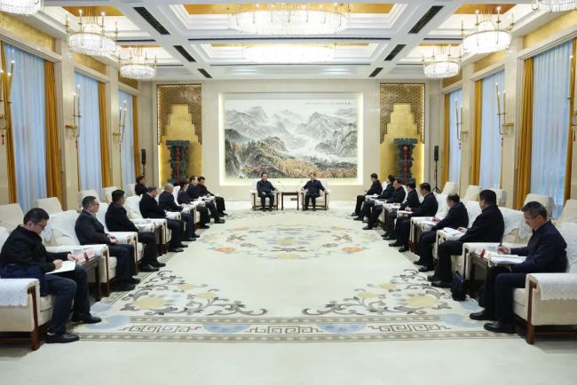 2月26日,省委书记、省人大常委会主任王忠林在武汉会见中国石油化工集团有限公司党组书记、董事长侯启军一行。