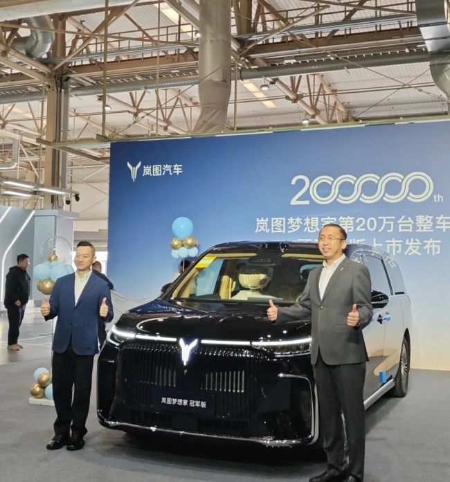 3月10日上午,在武汉经开区岚图汽车黄金工厂,岚图汽车董事长、党委书记卢放将岚图梦想家冠军版交付到岚图梦想家第20万辆车主——奥运体操冠军杨威手中,这标志着岚图梦想家第20万辆整车正式下线。“中国人,应该有属于自己的MPV!”卢放激动地说。现场,岚图汽车携手华为乾崑打造的岚图梦想家冠军版上市发布。