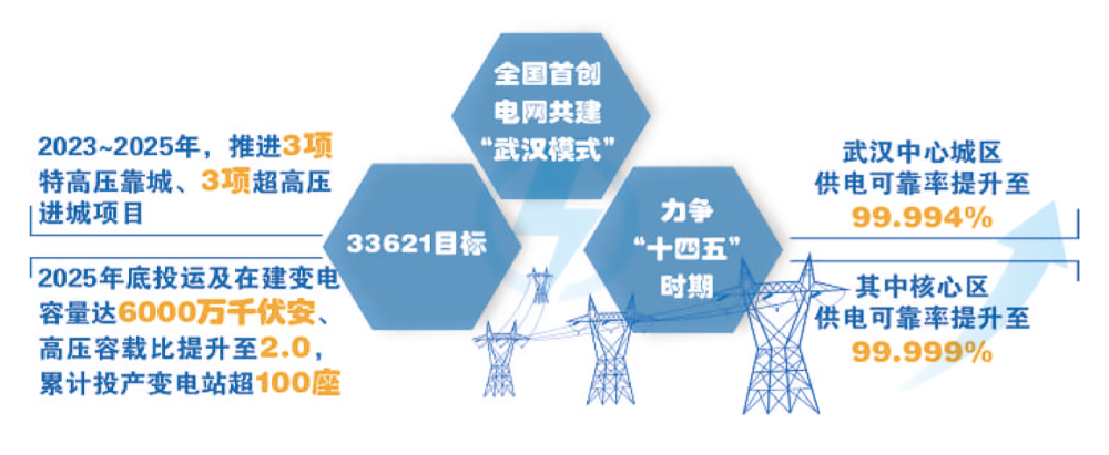 为此,武汉供电公司2023年提出33621目标:在政企合作的电网建设“三年攻坚”(2023~2025)期间,推进3项特高压靠城、3项超高压进城项目;2025年底投运及在建变电容量达到6000万千伏安、高压容载比提升至2.0,累计投产变电站超过100座。
