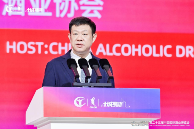 中国酒业协会理事长宋书玉在开幕式致辞中,以“高山流水遇知音”典故开篇,点明全球宾朋为美酒与知音齐聚江城。盛赞了武汉兼具历史底蕴与生态之美,更称此次酒博是世界名酒的产业巡礼、商贸盛会,更是文化盛宴与思想激荡平台。他同时提出“以四海之‘酿’成百川之势、以互鉴之‘樽’淬炼未来、以共享荣耀彰显文明之光”三大方向,呼吁酒业守护风土、践行ESG理念。最后,宋书玉祝愿酒博会圆满成功,号召业界共谱“世界名酒,共享荣耀”新篇章,为全球酒业繁荣贡献力量。
