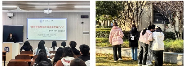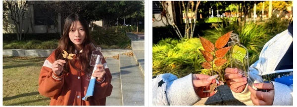 活动伊始,班长陈玢颖结合医美专业特色,阐释了活动“以叶为媒 以医为魂”的核心意义,强调“医字承载生命责任 美艺传递人文温度”的职业理念。现场发起的“落叶美学小互动”,让同学们快速发现叶片形态、色彩中蕴含的创意潜力,瞬间点燃参与热情。
