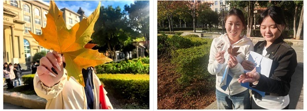 在指定区域内,大家小心翼翼捡拾各类落叶,既遵守校园绿化管理规定,不损坏树木枝干、不采摘鲜活叶片,践行环保理念,又用心挑选形态、颜色、质感各异的叶片,为后续创作储备素材。