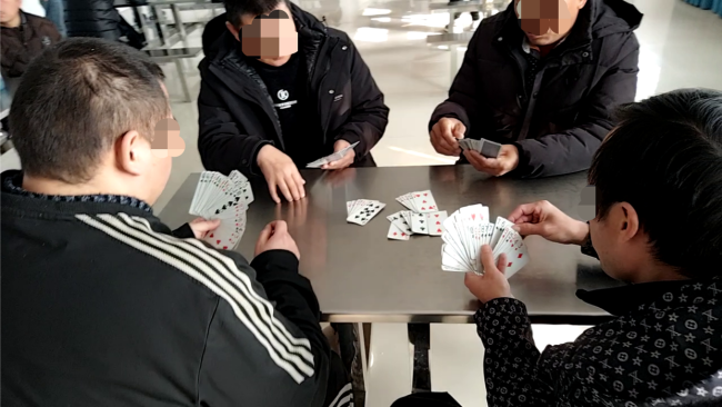 2025年12月10日,襄阳宏安精神病医院住院的病人正在打“掼蛋”。新京报记者韩福涛摄